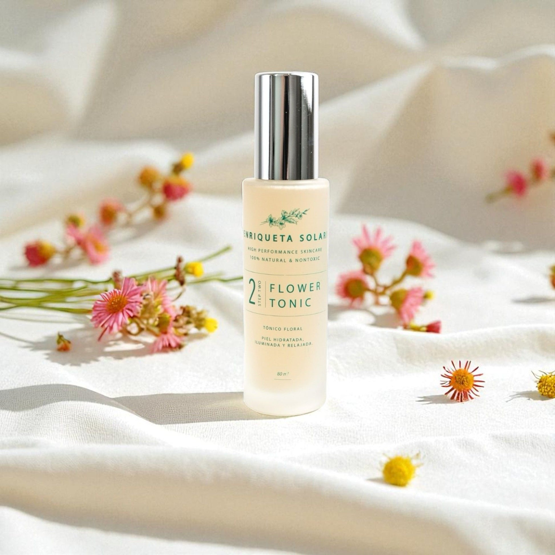 Flower Tonic es un tónico facial hidratante y revitalizante que acompaña tu rutina aportando hidratación inmediata, frescura y equilibrio.